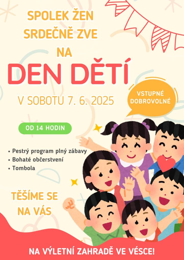 V sobotu 7. 6. 2025 od 14 hodin na Výletní zahradě ve Vésce. Srdečně zve Spolek žen.
