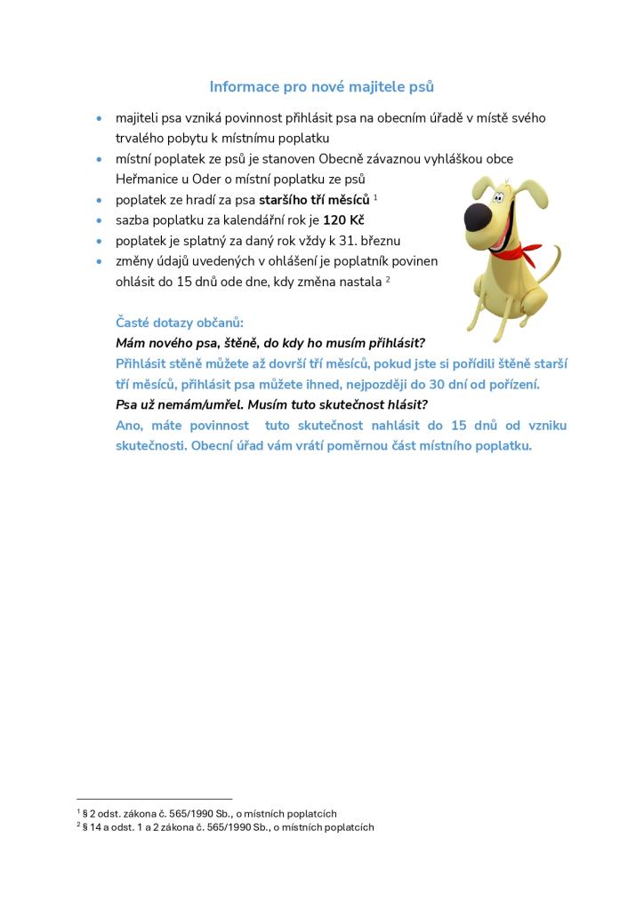 Povinnosti majitelů přihlásit a odhlásit svého psa dle § 2 odst. zákona č. 565/1990 Sb., o místních poplatcích § 14 a odst. 1 a 2 zákona č. 565/1990 Sb., o místních poplatcích.