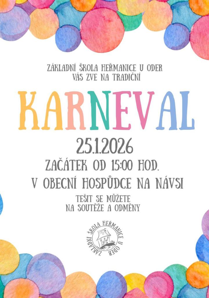 V neděli 25. 1. 2026 se bude konat Karneval/Maškarní ples pro děti. V sále Obecní hospůdky Na Návsi od 15 hodin. Vstupné 80 Kč. Děti v masce vstup zdarma. Omlouváme se, v lednovém Obecním zpravodaji je mylně uvedena sobota. Snad to nikoho nepoplete.
