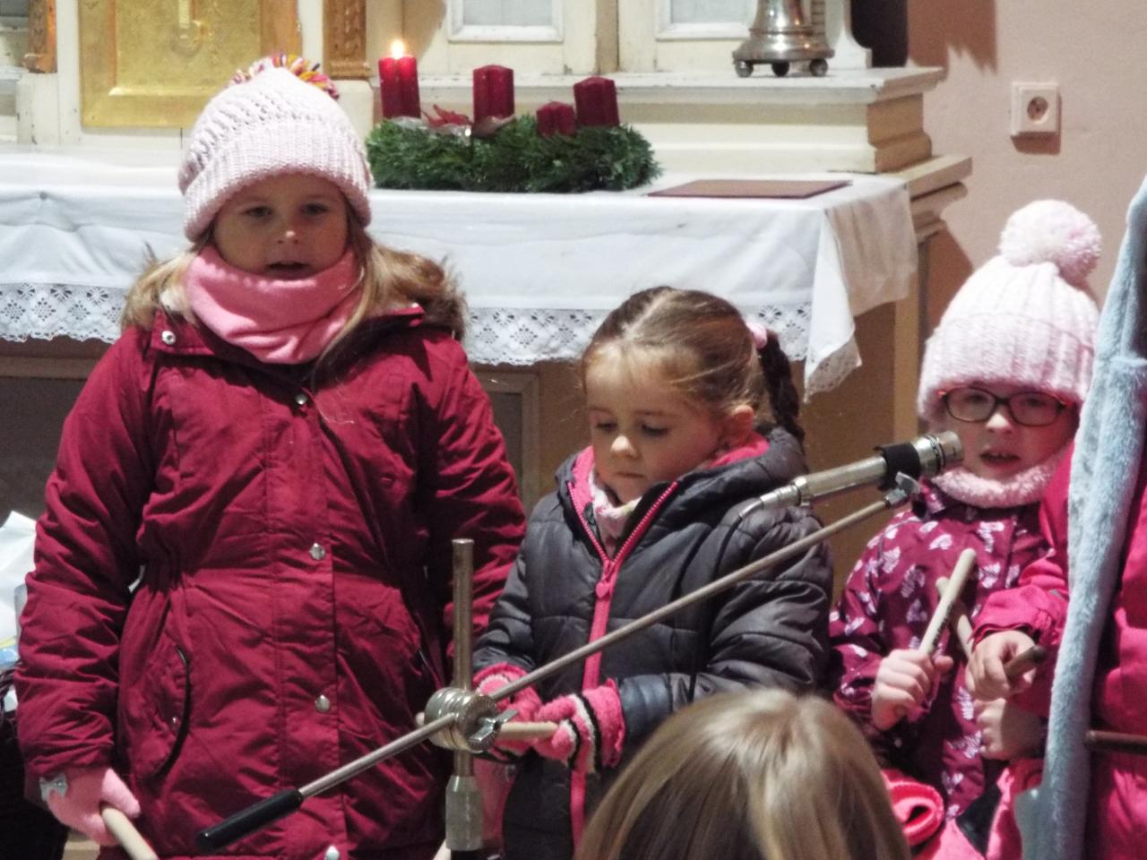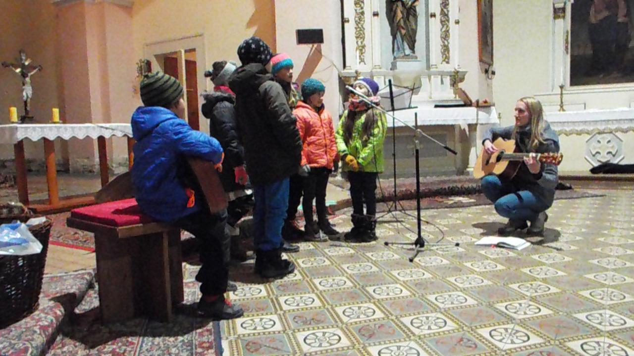 Mikuláš rozdal dětem balíčky a před kostelem děti dostaly prskavky. Za radostného odpočítávání jsme rozsvítili vánoční stromeček.