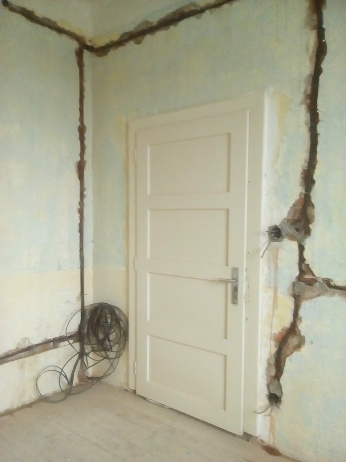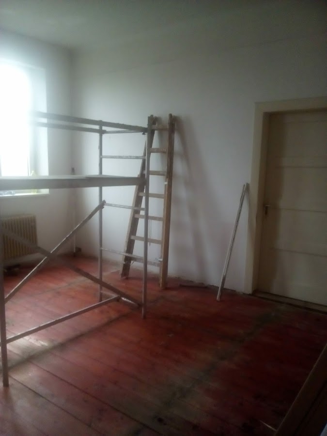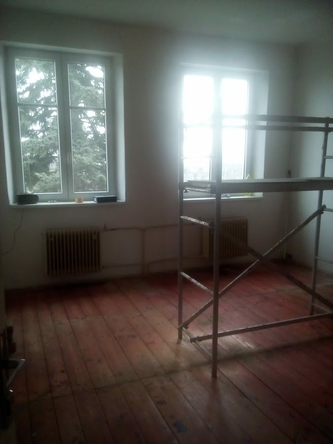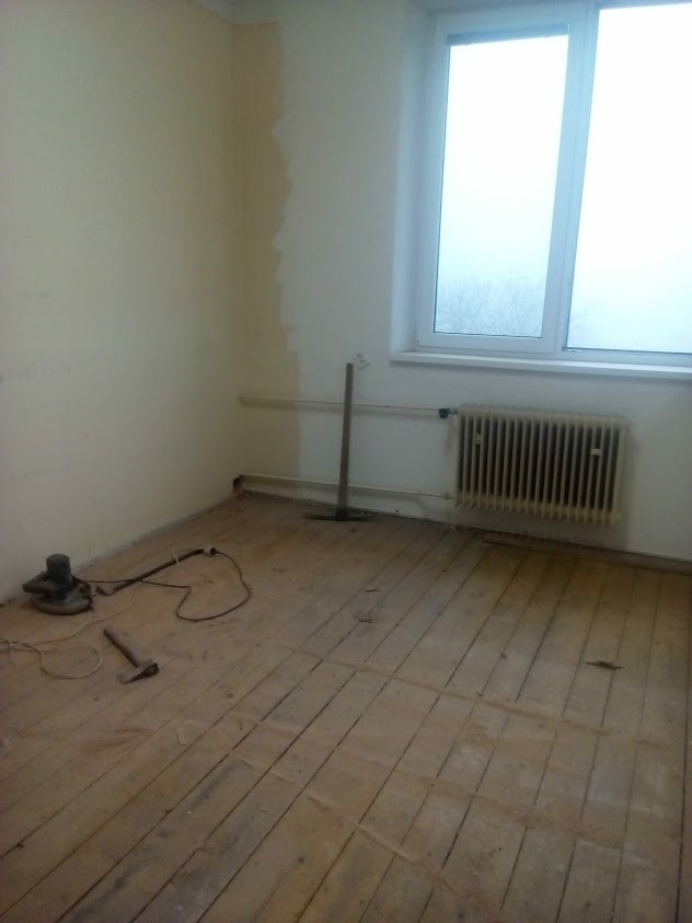Výměna elektrických rozvodů, výměna podlah, radiátorů a nová výmalba.