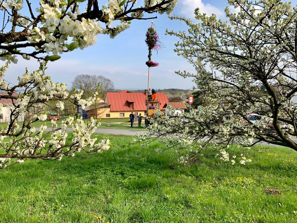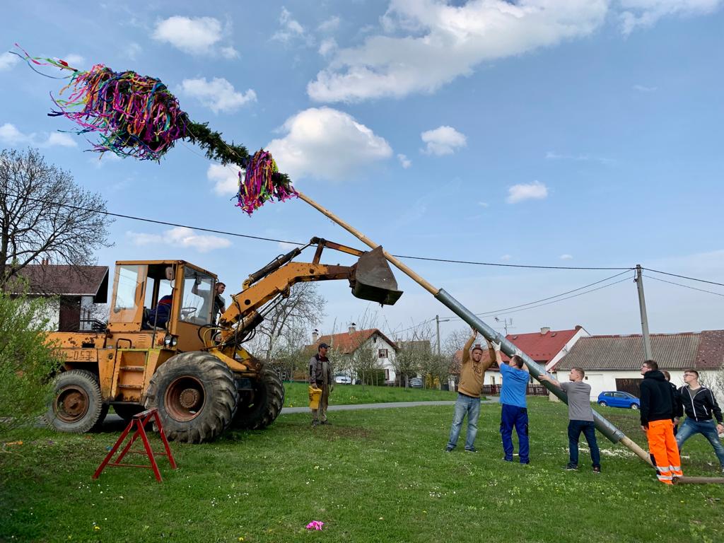 30.4 stavění máje na náměstíčku 28.5 kácení máje + vaječina v hasičské zbrojici ve Vésce