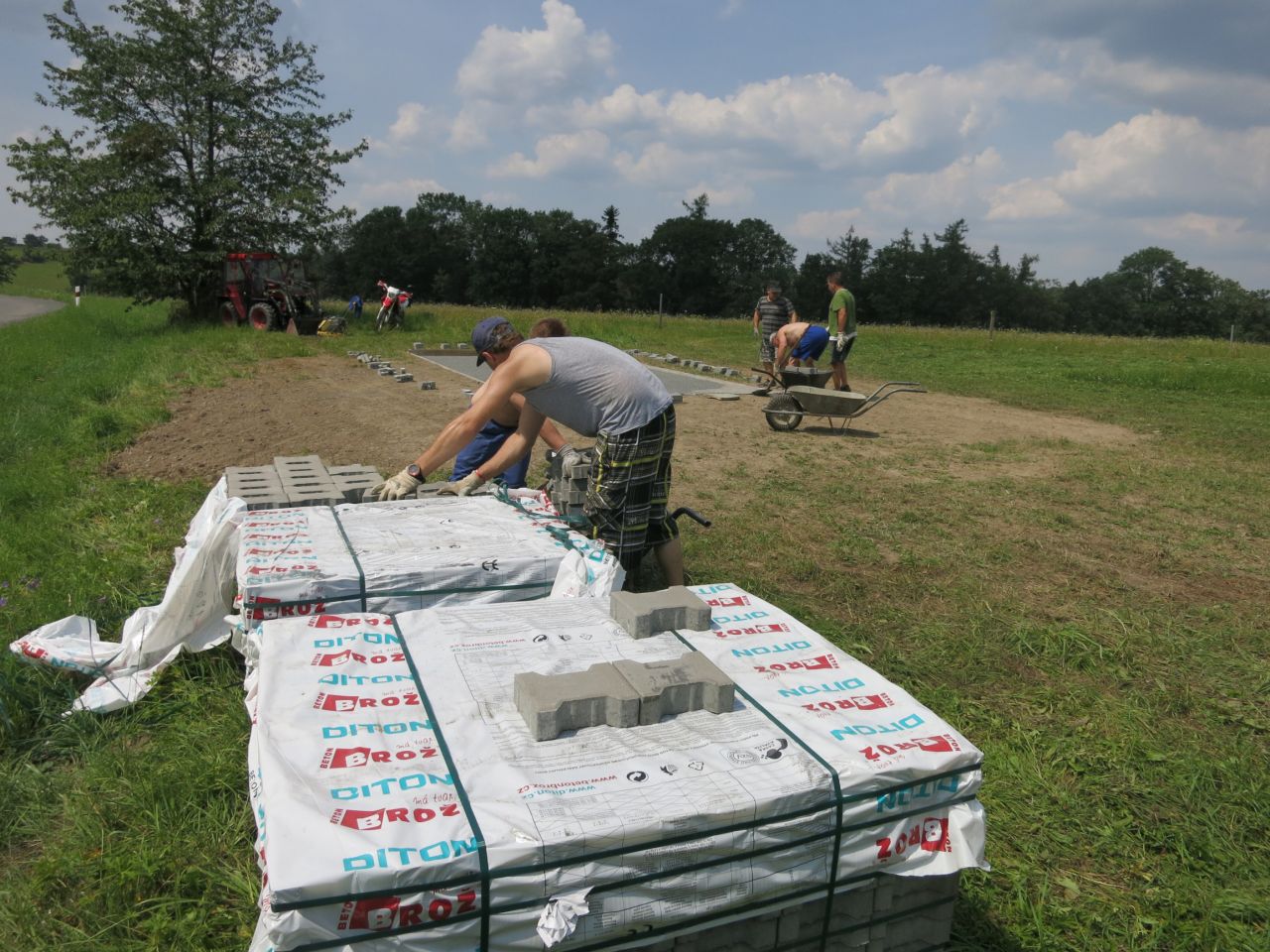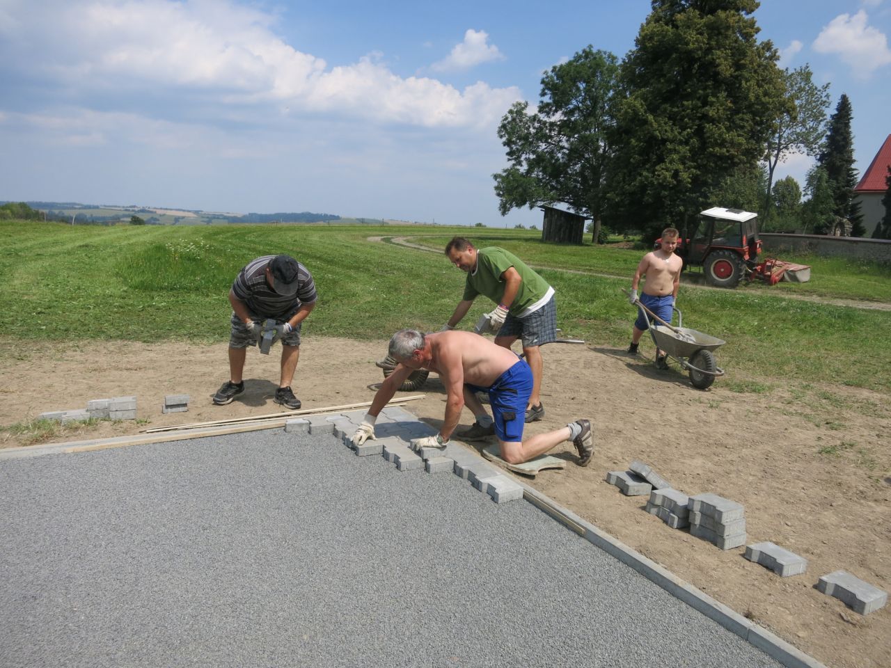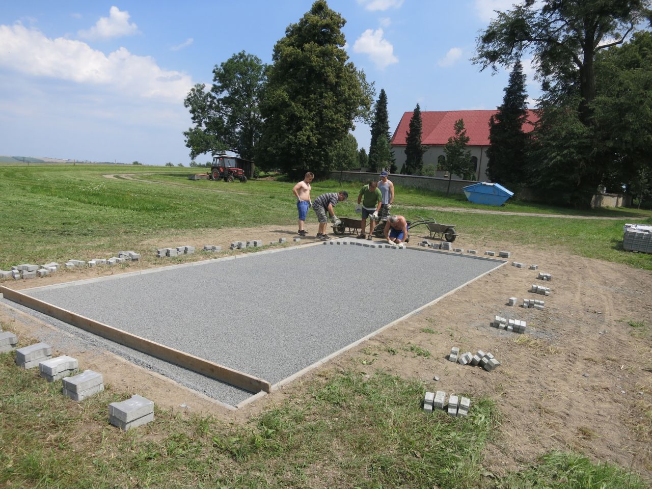 14.7 - 19.7 jsme odpracovali 30 brigádnických hodin na zpevnění povrchu pod základnu a požární nádrž