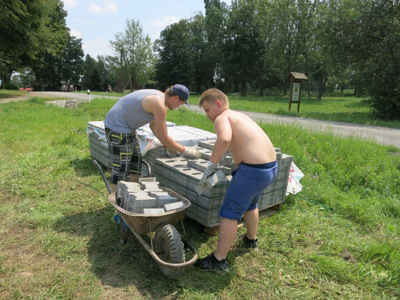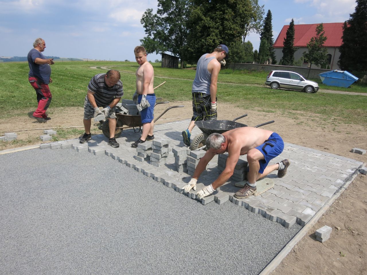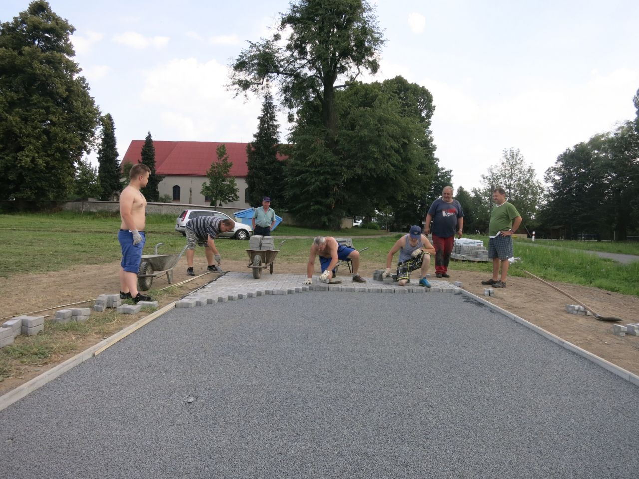 14.7 - 19.7 jsme odpracovali 30 brigádnických hodin na zpevnění povrchu pod základnu a požární nádrž