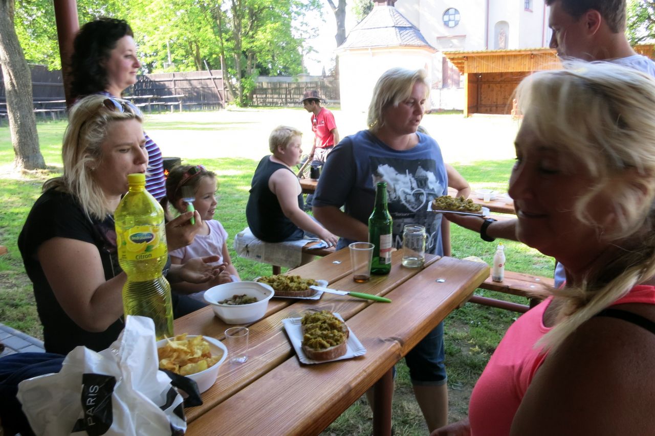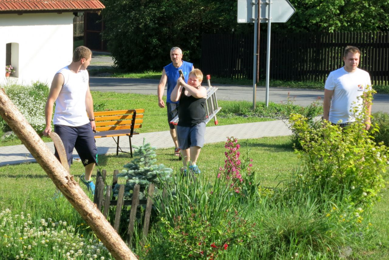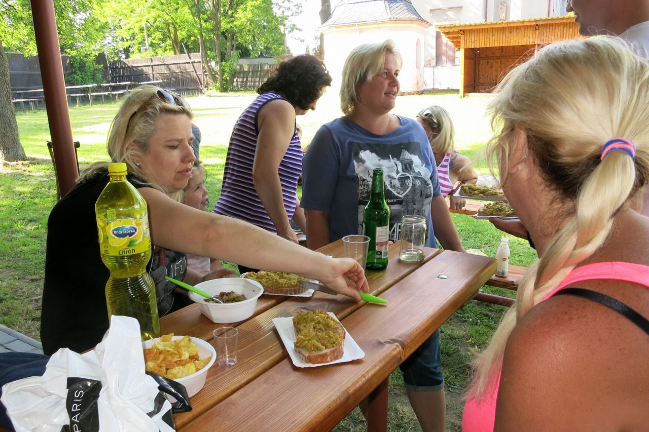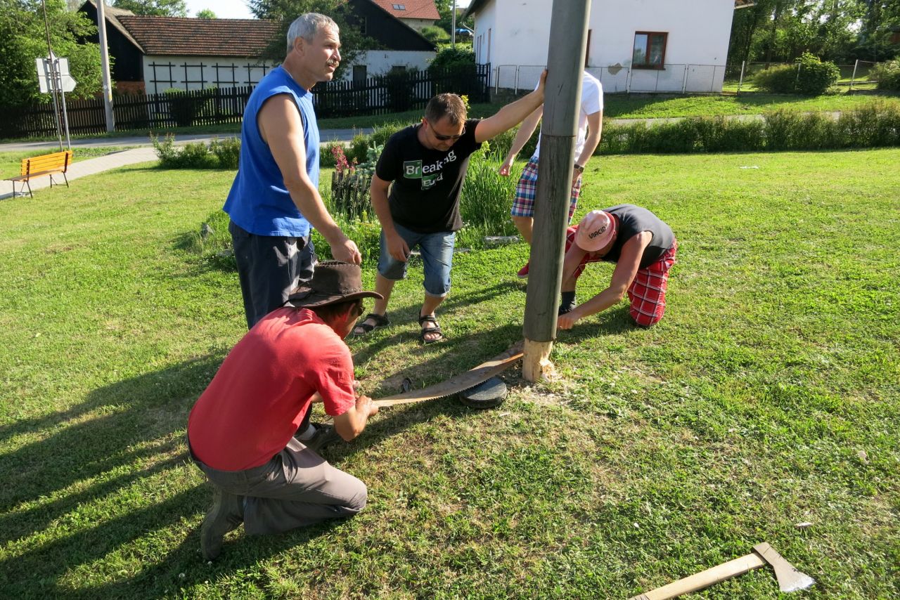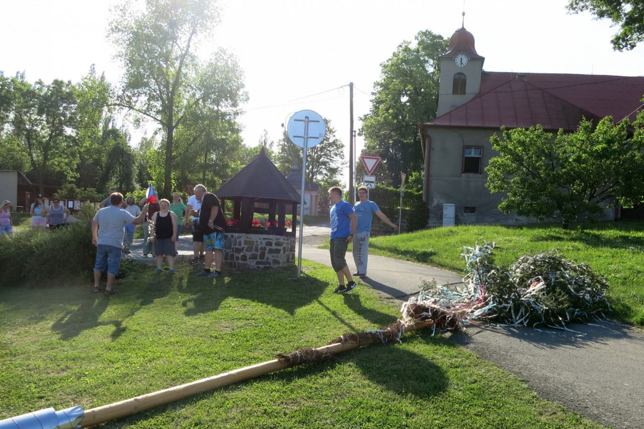 Dne 3. 6 2017 jsme na náměstíčku ve Vésce slavnostně skáceli májku. Poté jsme se přesunuli na výletní zahradu, kde jsme smažili vejce.