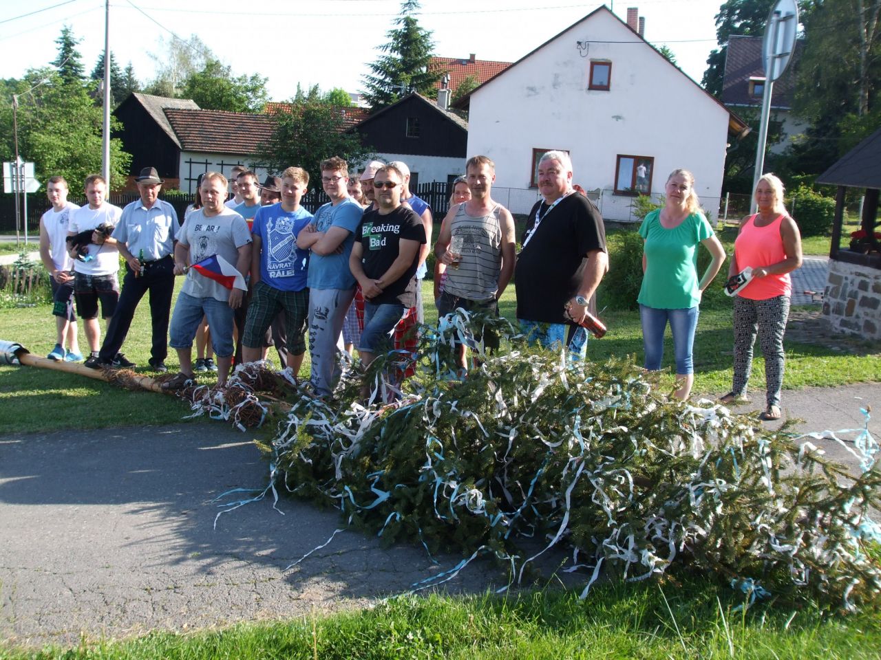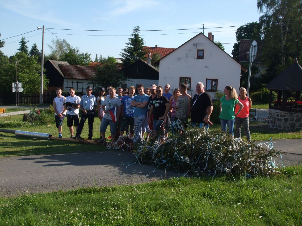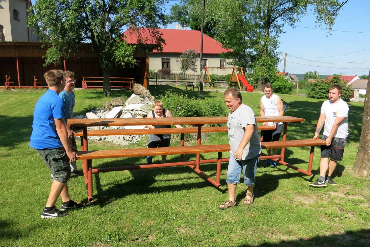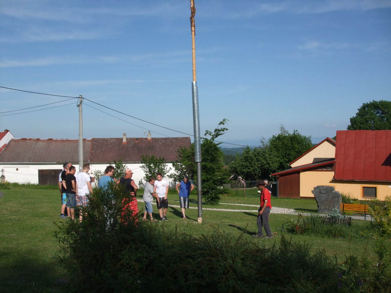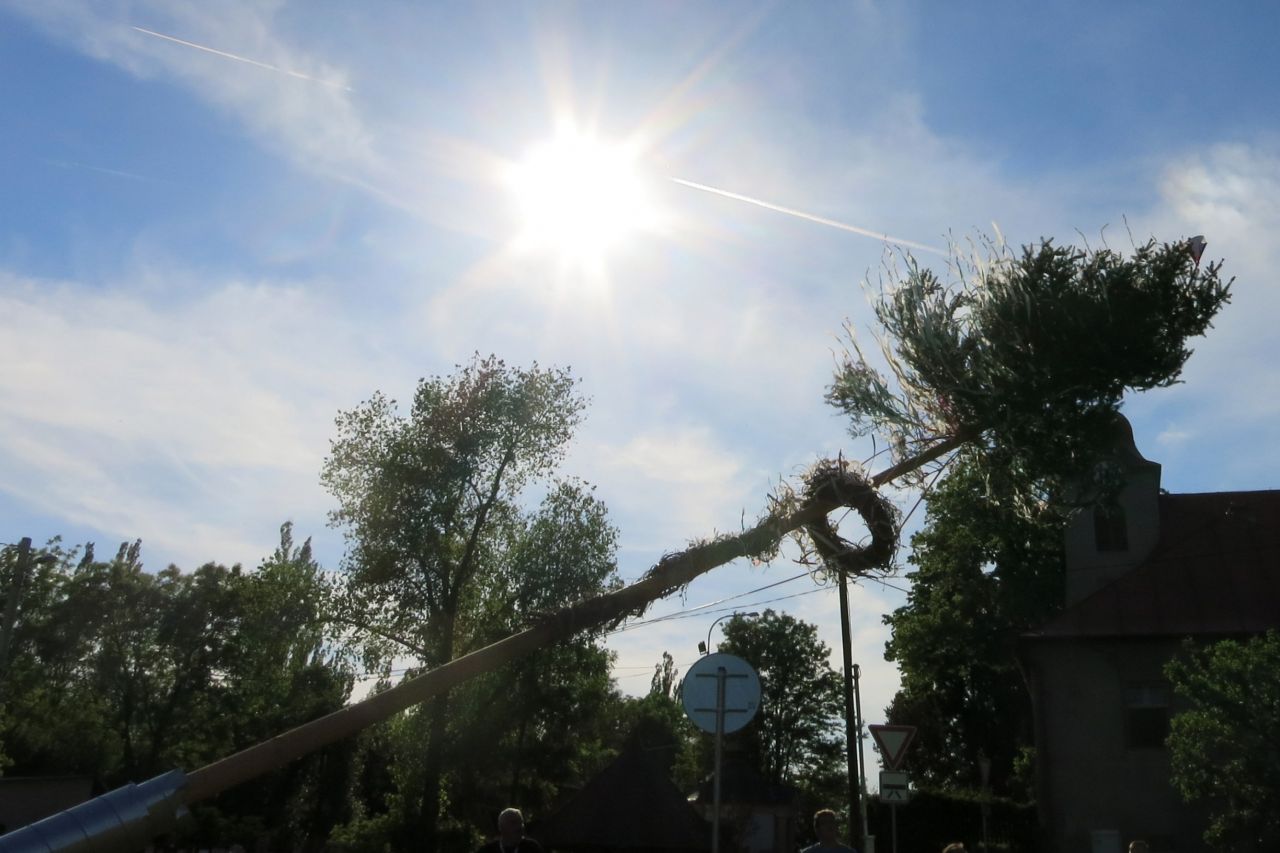 Dne 3. 6 2017 jsme na náměstíčku ve Vésce slavnostně skáceli májku. Poté jsme se přesunuli na výletní zahradu, kde jsme smažili vejce.