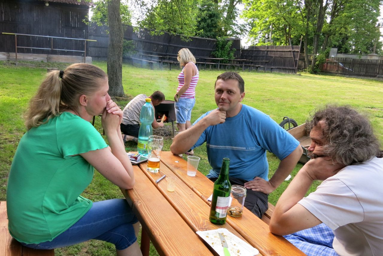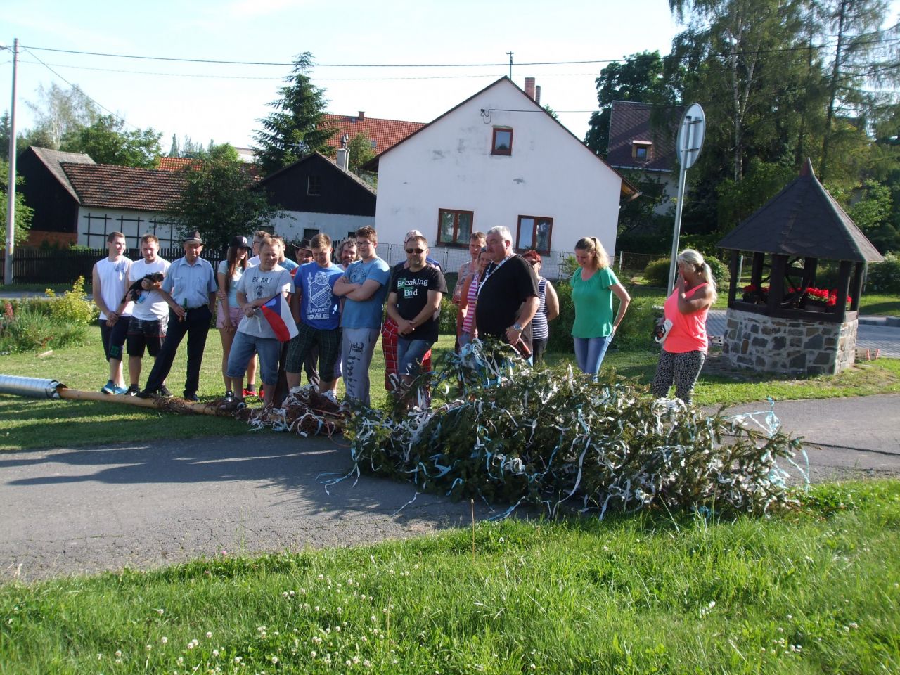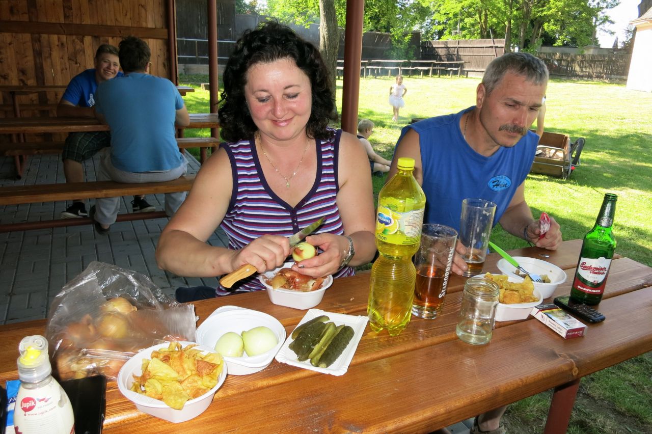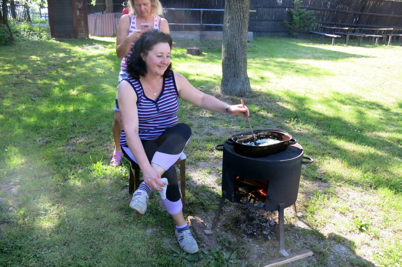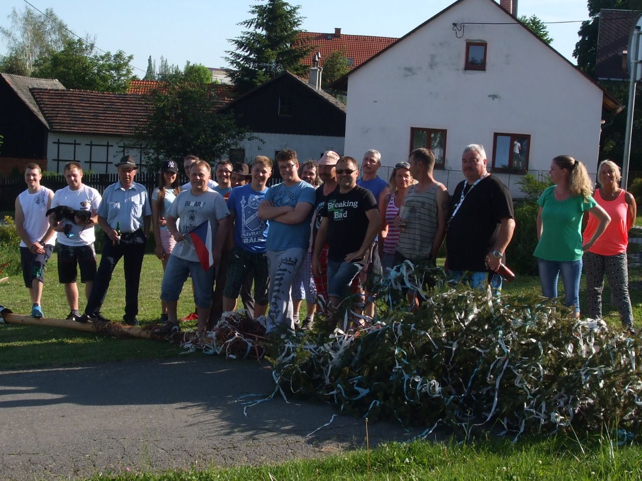 Dne 3. 6 2017 jsme na náměstíčku ve Vésce slavnostně skáceli májku. Poté jsme se přesunuli na výletní zahradu, kde jsme smažili vejce.