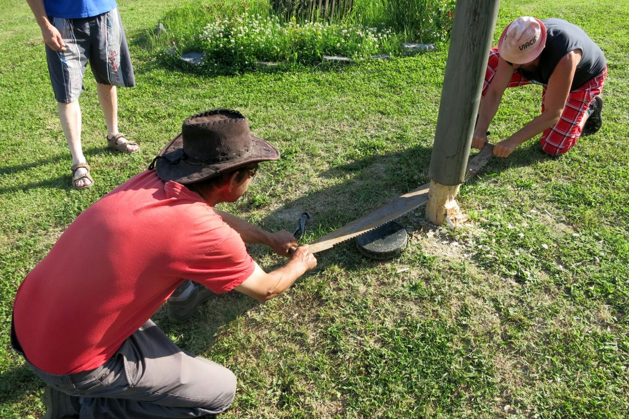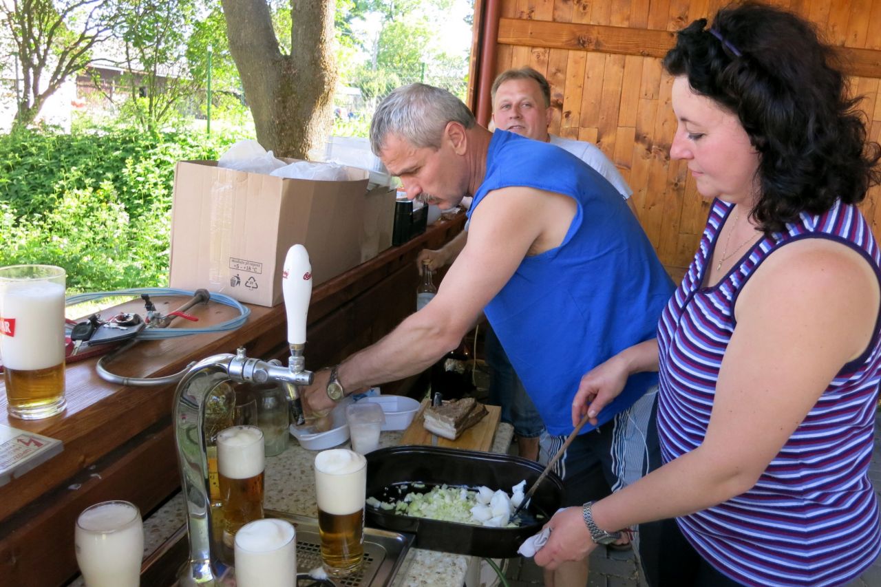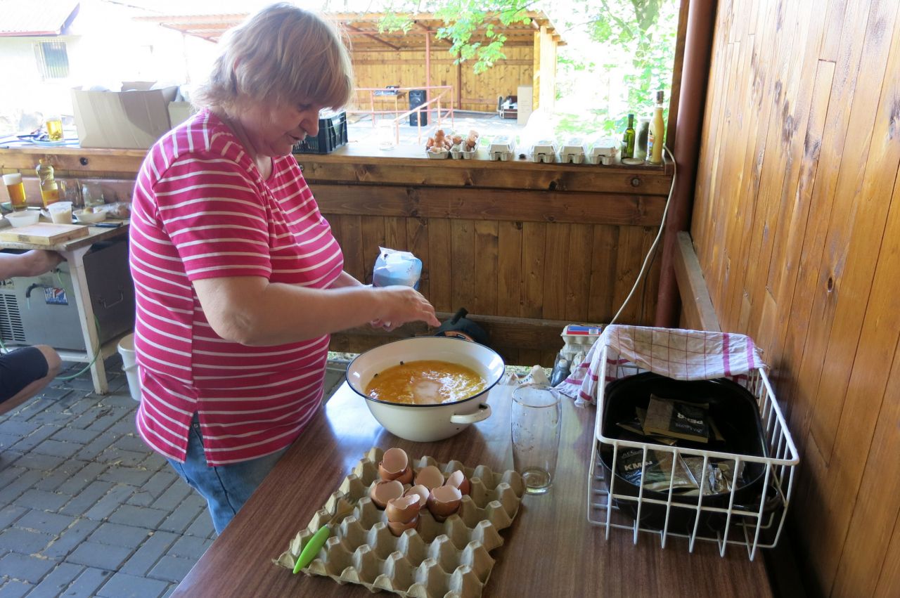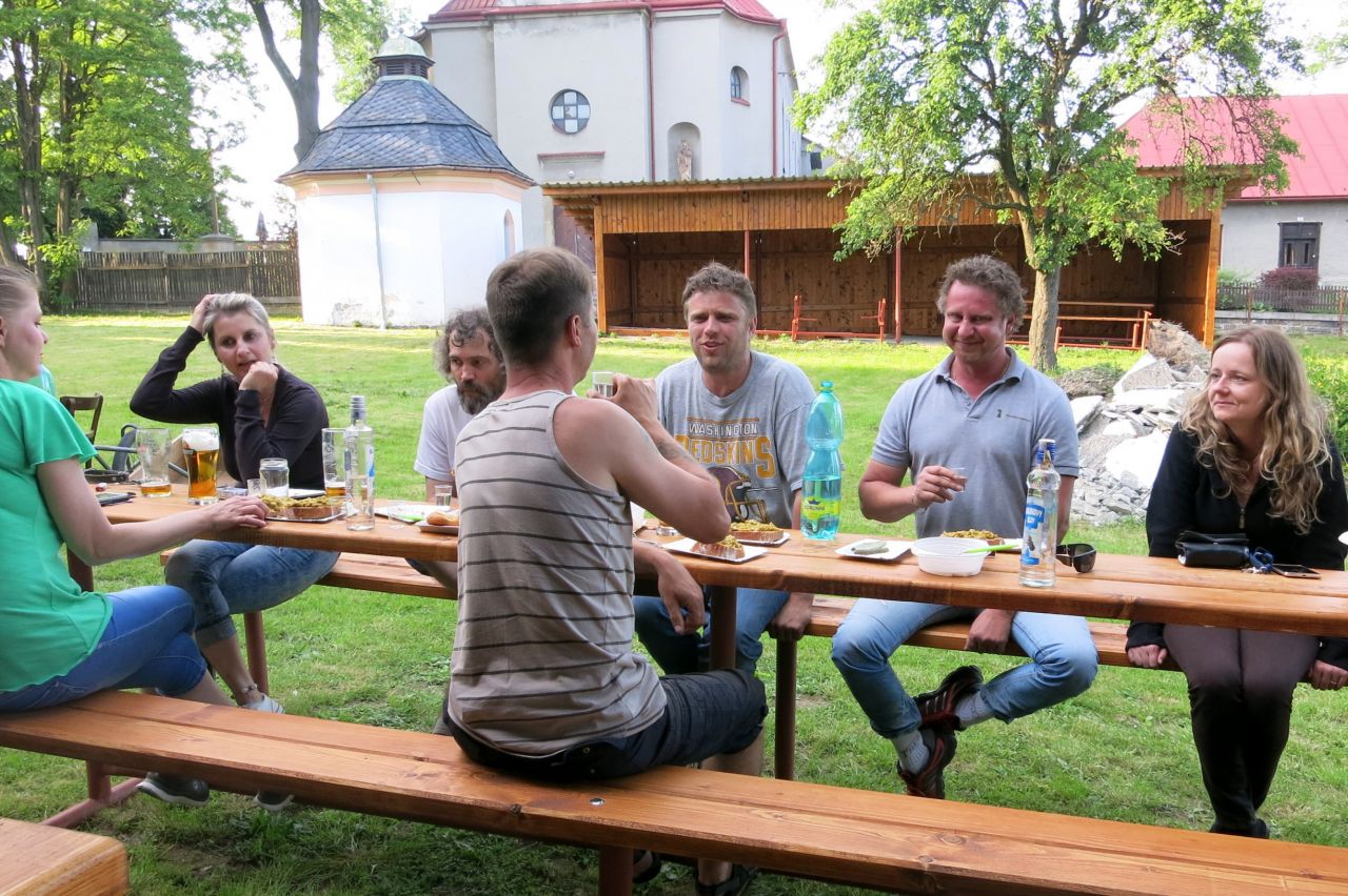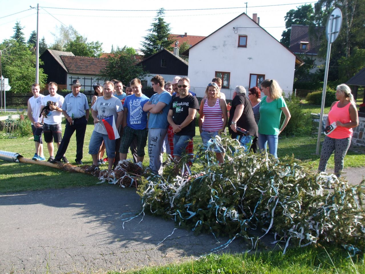 Dne 3. 6 2017 jsme na náměstíčku ve Vésce slavnostně skáceli májku. Poté jsme se přesunuli na výletní zahradu, kde jsme smažili vejce.