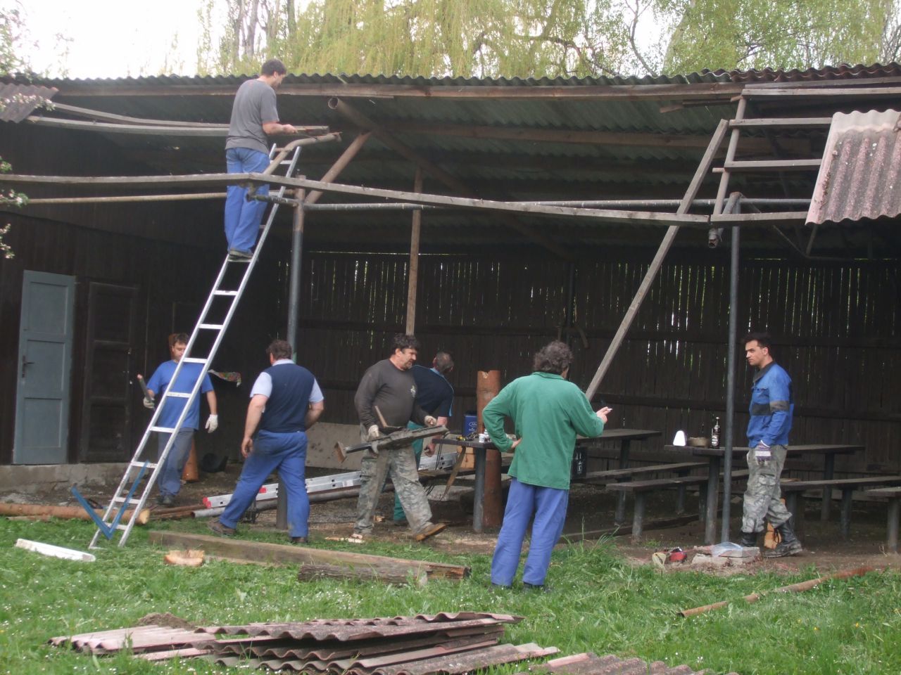 brigáda na zahradě ve Vésce