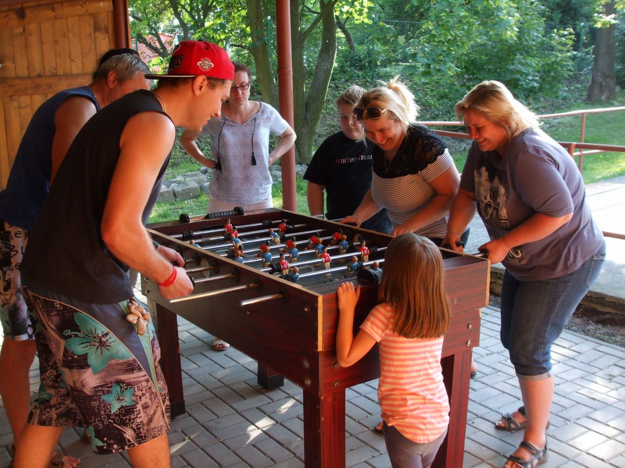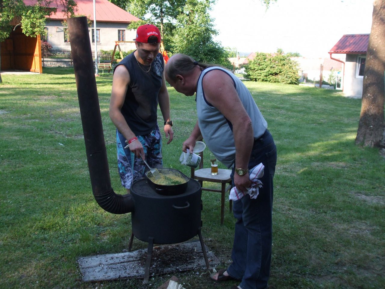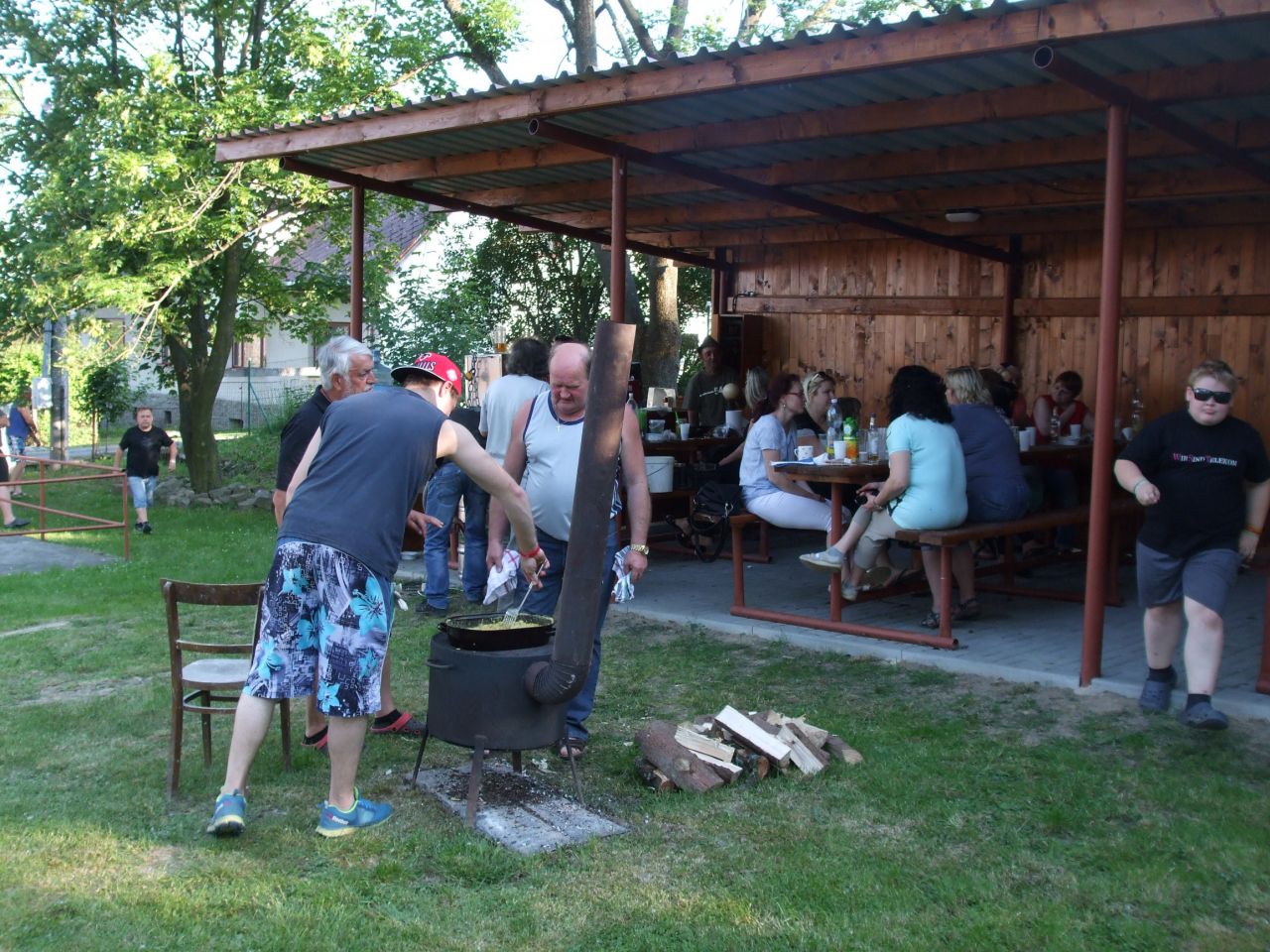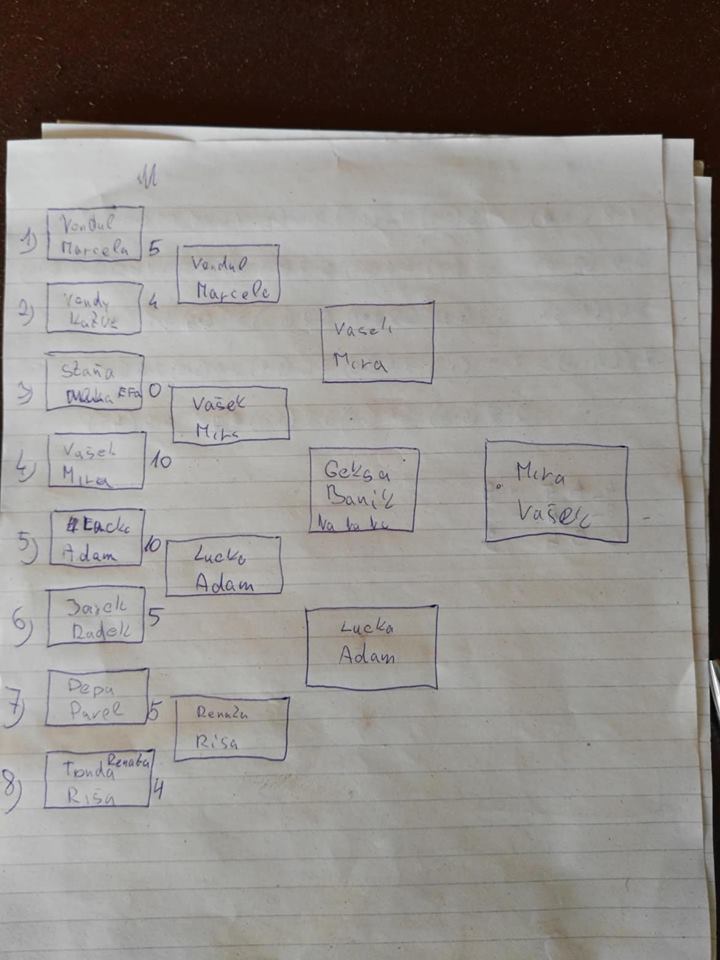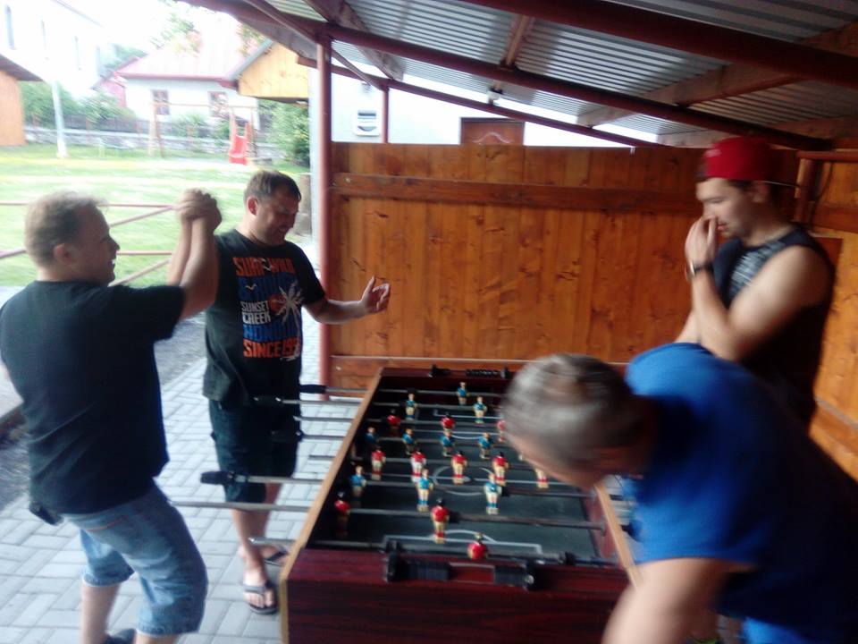 Dne 26.5 2018 ve 14:00 jsme se sešli na zahradě ve Vésce. Nejdříve jsme si udělali pravou vaječinu ze 100 vajec + 1 pštrosí. Pak jsme si zahráli vyřazovací turnaj páru ve stolním fotbale, který vyhrál Mirek a Vašek Martečkovi.