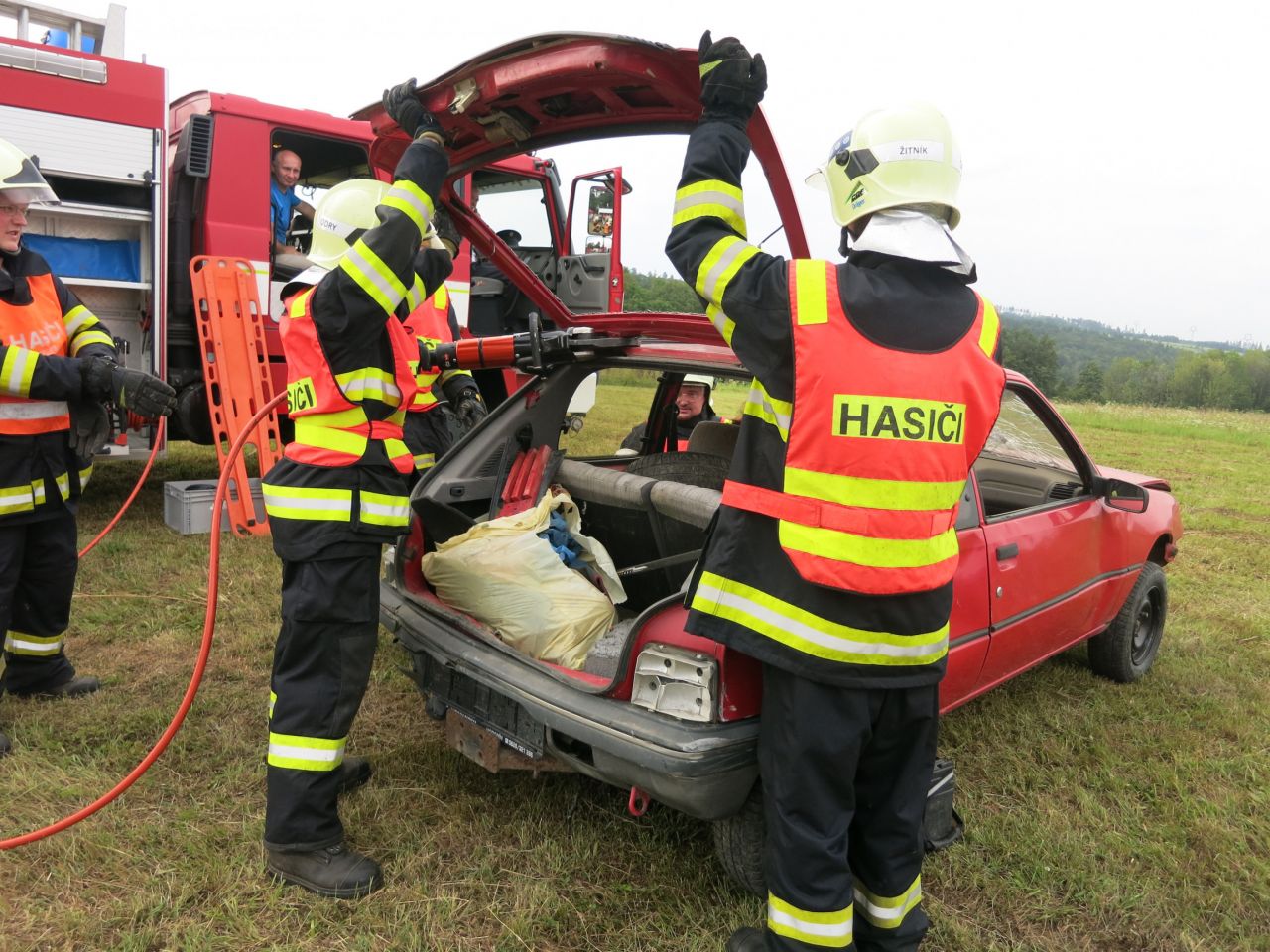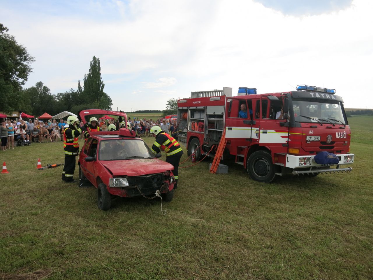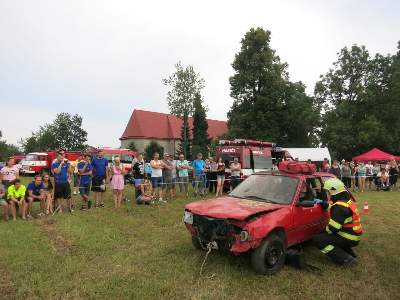 Proběhla i ukázka vyprošťování osob (v hlavní roli starostka obce) členy SDH Odry.