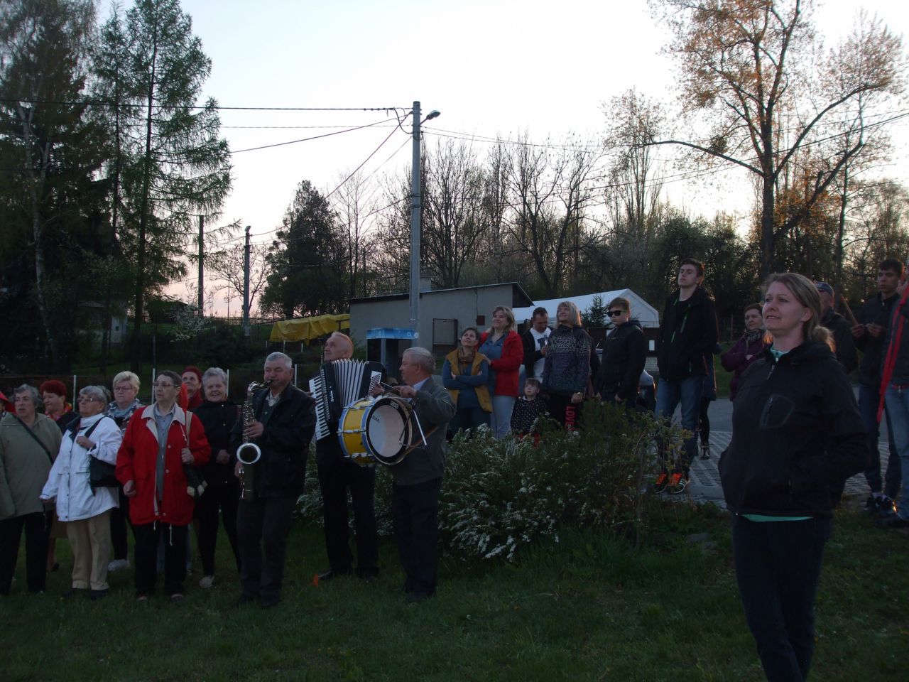 Ke stavění máje nám hrála polská dechová hudba z Wawalu. Zazpívali jsme si české i polské národní písně.
